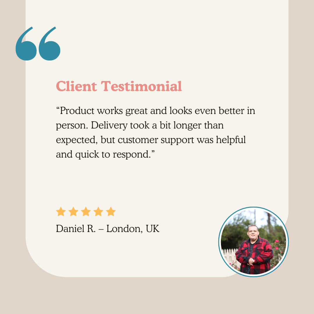Standard delivery takes 3–7 business days depending on location. Fast shipping options are also available during checkout.